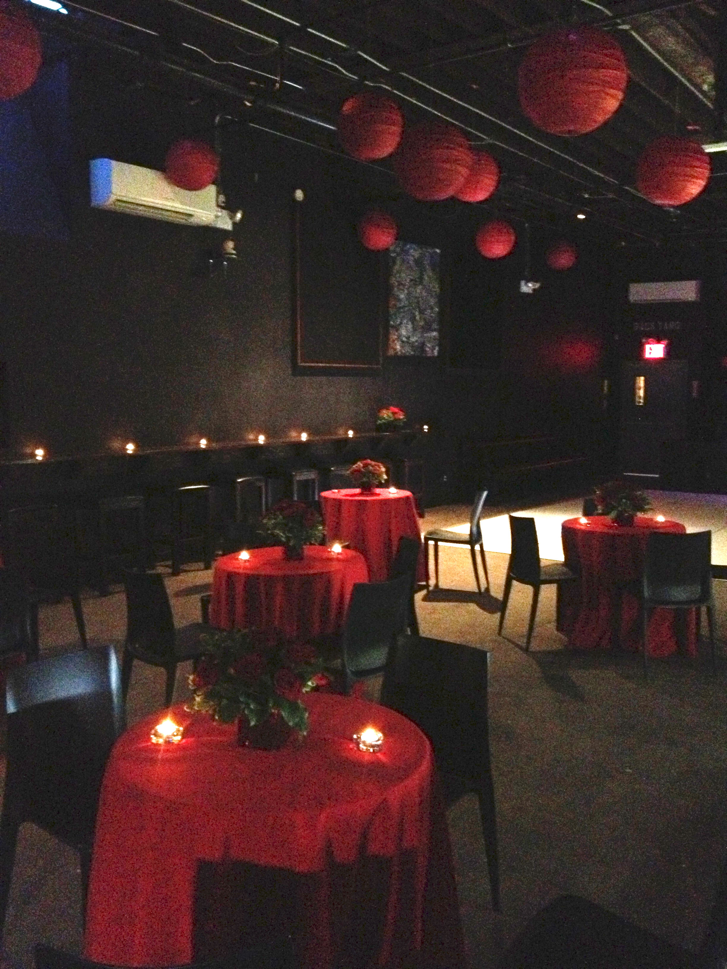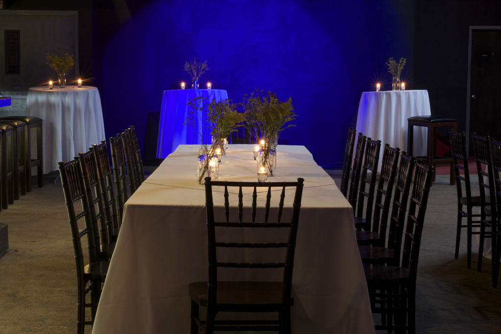 The converted warehouse boasts a large main room with exposed brick, high ceilings, a marble light-up bar, and a raised stage and sound system. We also have a smaller side room with a stage, an open-air backyard (accessible via both stage rooms), and an intimate lounge area. There is also a small kitchen on the premises, which can be utilized by outside caterers or event planners to serve food to guests.
